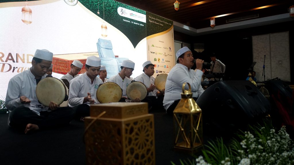 Memasuki malam hari, suasana berubah menjadi lebih hangat dan penuh kebersamaan. Acara penyerahan hadiah dibuka dengan lantunan hadroh yang menenangkan, sementara para peserta menikmati momen buka puasa bersama. Nuansa Ramadhan terasa begitu kental, menciptakan suasana yang tidak hanya meriah tapi juga penuh ketenangan.